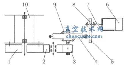 1.大圆柱直齿轮 2.过桥齿轮 3.小圆柱直齿轮 4.蜗轮 5.大斜齿轮 6.防爆电动机 7.弹性联轴器 8.小斜齿轮 9.环面蜗杆 10.卷筒