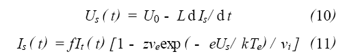 L 为振荡电路电感。假设ve/ vi ≈100 , Te ≈1.3 ×104k , z≈1 , Us (t) 仅为U0 与It 的函数。