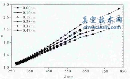 图1 0nm~0.47nm厚度Cr插层的折射率曲线