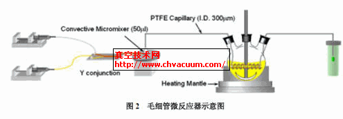 将ZDC(0.5 mmol)溶于2 mL TOP 中,与2 mL OLA混合作为硫源和锌源。等体积的CdSe和ZnS 前驱体溶液以一定的流速通过微量注射泵注入反应器中,混合后进入聚四氟乙烯(PTFE)进行外敷过程。具体实验装置参见图2。得到的量子点分散于氯仿溶液中。