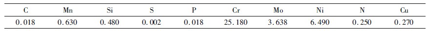 表1 25Cr-7Ni-4Mo-N 钢的化学成分(质量分数,%)