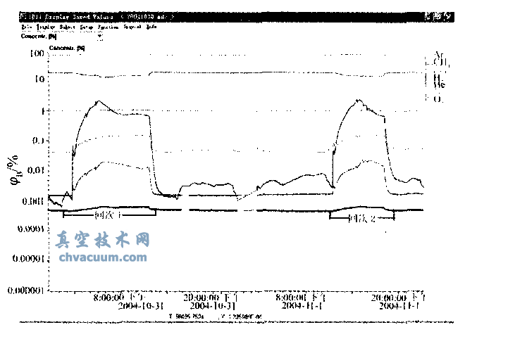某实验室根据钻井现场的实际情况采用了合理的取样装置,避免了影响采样的各种污染因素及水分的影响,保证了所测气体为真实的地下流体。收集到的珍贵样品,用以测定其同位素并作进一步研究。采用伯东公司代理的德国普发质谱仪 Pfeiffer OmniStar 在线分析钻井泥浆中气体组分。通过对泥浆脱气池空气连续1624次测量的质谱数据图及测量结果的统计,其含量值与空气值也十分吻合,完全满足某钻探现场对分析测试的要求。