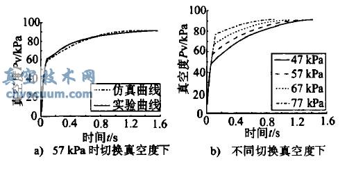 通过以上的分析,我们认为将切换真空度值确定为等于(考虑电磁阀的响应时间时可略小于) 由响应时间所对应的真空度值是比较合适的。