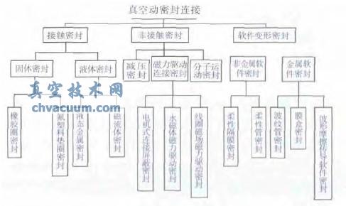 就真空容器所要求的传动性质来看,动密封所传递的运动主要有往复直线运动、旋转运动、摆动运动和包括这三种运动形式的复合运动等四种情况。为了实现这些运动,并且根据真空的特点,动密封连接在很大程度上决定于密封部分所采用的方法。其分类如图1 所示。