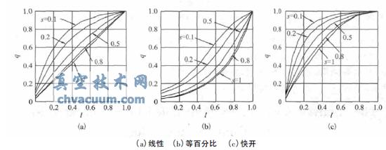 控制阀在工作状况下其流量特性将发生变化( 图1) ,其可用流量特性与阀瓣位移的关系确定q= f(l) 。考虑压降比s 后,其工作流量特性为