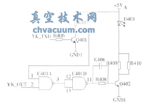 人机对话模块具备状态显示、参数组态、浏览、红外遥控等功能,硬件部分由显示屏、就地操作按键、指示灯、红外发射与接收设备等组成。采用C8051F340单片机实现人机对话功能。C8051F340的I/O口可以作为就地操作按键的输入口,也可以作为状态指示灯的输出口,完成显示屏的显示功能。模块通过UART口实现红外数据的发送与接收,图2为人机对话模块的红外发射电路。