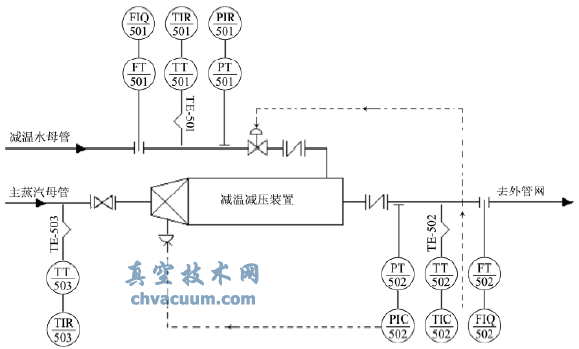 工艺参数的稳定可靠是保证产品质量的重要前提。某轮胎公司目前半钢产量约为15000套/天,半钢生产过程硫化工艺所需内压蒸汽的连续供给,平常是由动力厂热电站汽轮机一级抽汽得到,而在汽轮机不能正常运行时,由双减系统将锅炉出口过热蒸汽经减温减压后对外供汽。由于执行机构工作环境恶劣,系统干扰因素太多,容易引发控制失灵,最终导致工艺参数超标。而这种故障发生具有突发性和危害性大的特点,因此,如何改善双减系统控制品质,消除控制系统故障,使其运行可靠,成为设备改造的重点课题。