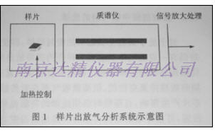 样片和四极质谱分析探头一起放人真空室中,本底真空约10-5帕。其中,所分析的样片置于加热丝带上,并紧贴在离子源附近。加热带要预先进行细致的除气处理,以降低本底气氛。逐步提高加热丝带上的温度,使传感芯片上吸附的气体随着温度的升高逐步释放,离子源将放出的气体电离成带电正离子,经四极场过滤,以质谱图的形式给出所分析气体的质量分布与含量大小。